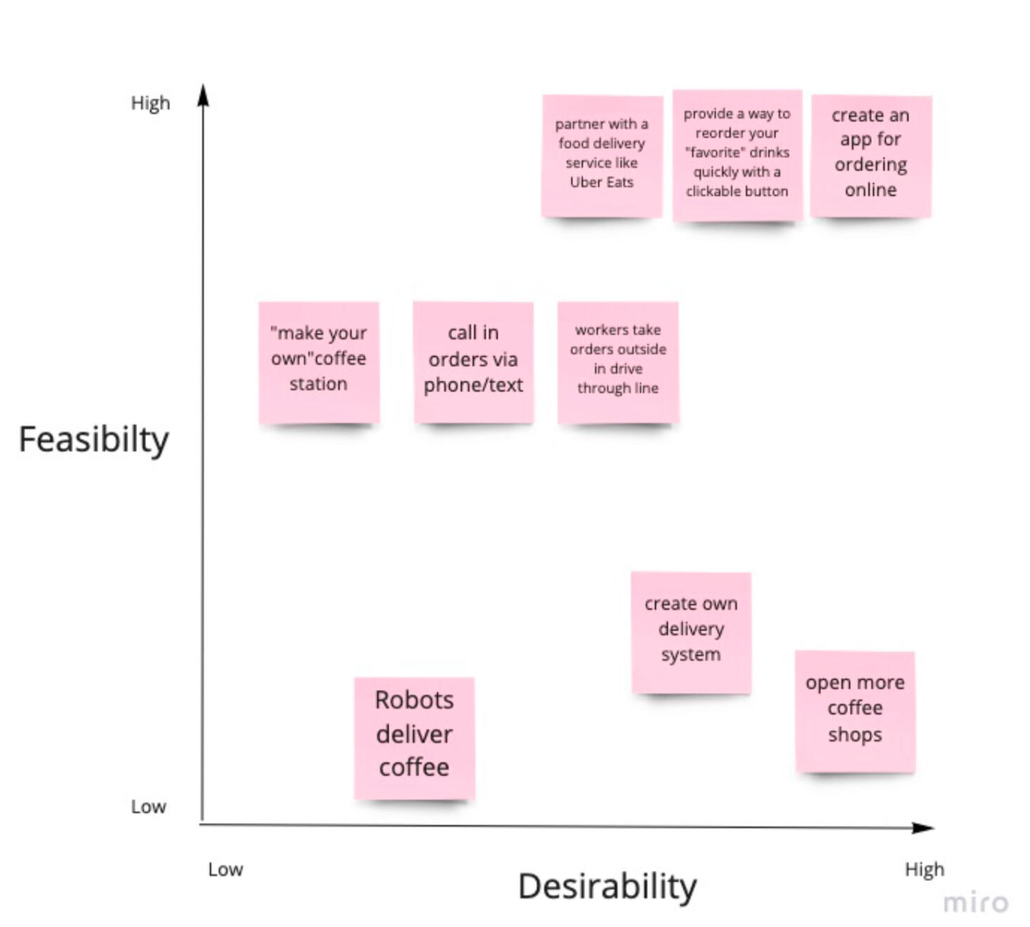 Using the How Might We Statements I created a Feature Prioritization Matrix from the ideas in a brainstorming session. (See the matrix above)