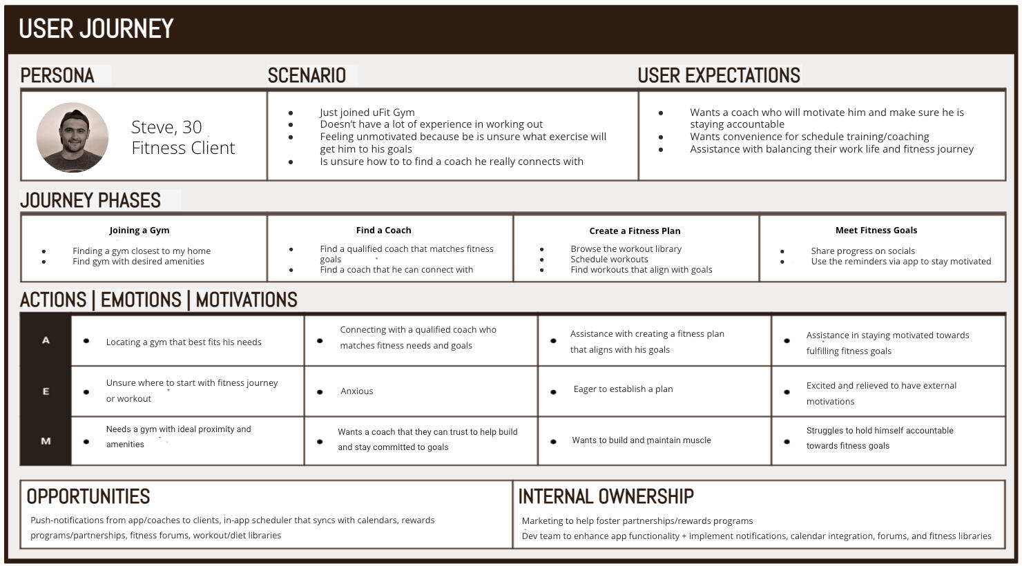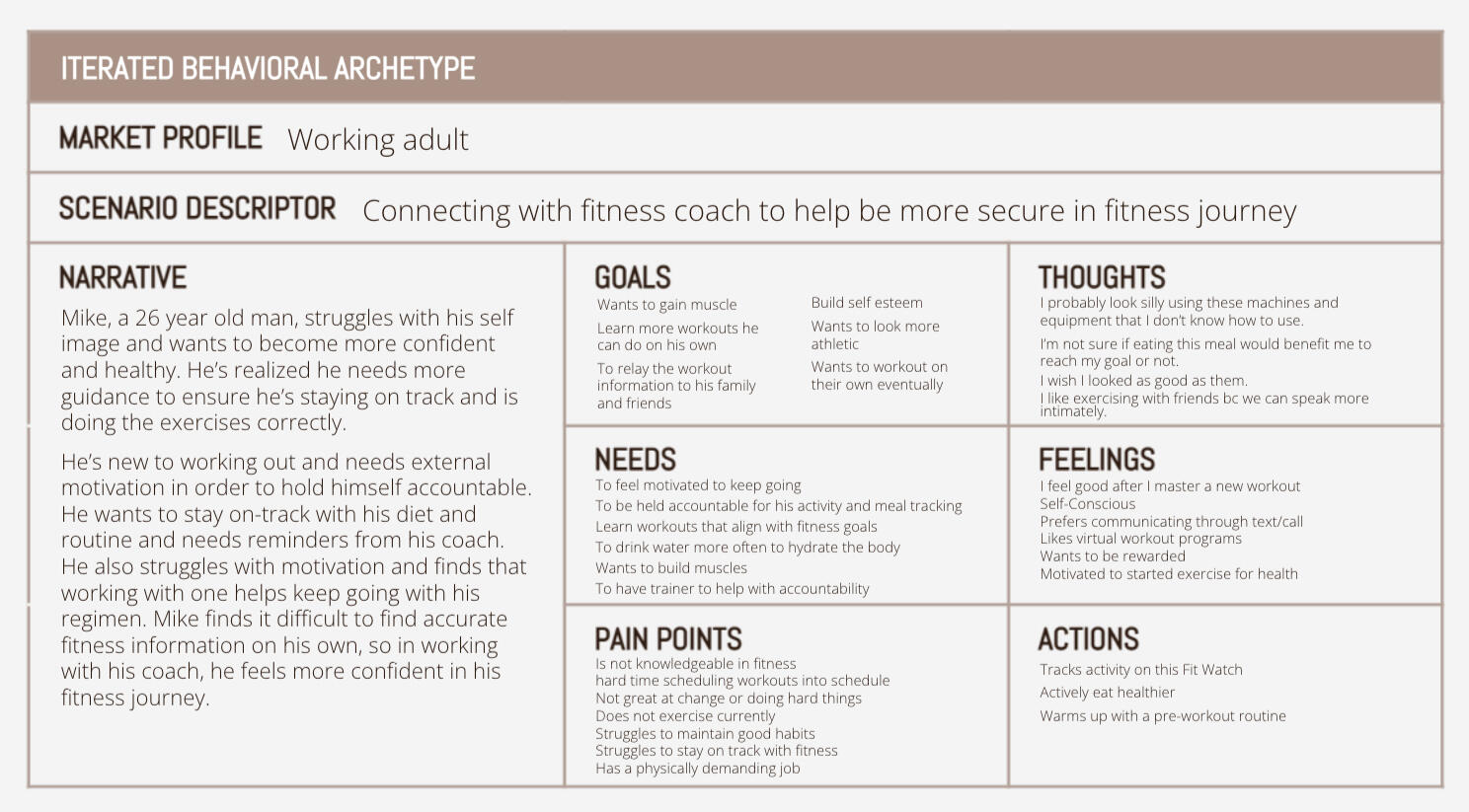 My team and I set out right away to get started with uFit Gym. We felt our first best step was to get in the mindset of a uFit Gym client. We began with making a behavioral archetype which allowed us to put ourselves in the clients shoes. With this information we developed a research plan:Why did we think an app would be beneficial?